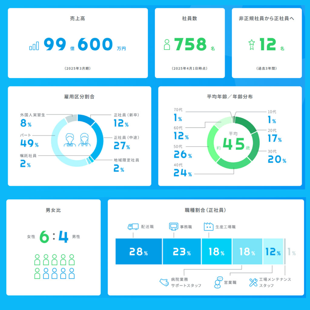 私たちは、生活や医療に欠かせないインフラを支えるサービスを展開しています。景気に左右されにくい安定した事業基盤があるからこそ、社員一人ひとりが将来を見据えて、安心して長く働き続けることができます。 - 多様な働き方を応援!男女比は「6:4」